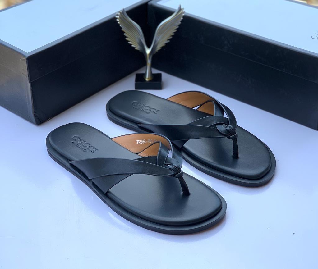 Gucci Black Leather Flip-Flop Sandals – Luxury Men’s Designer Footwear